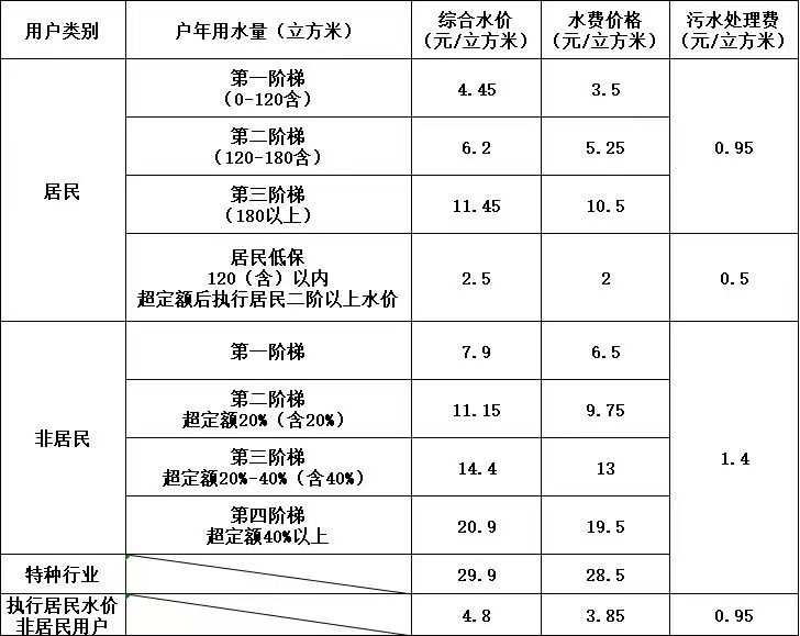 承德供水水費(fèi)單價標(biāo)準(zhǔn)表